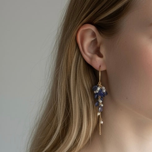 Tanzanite and Pearl Cluster Earrings
