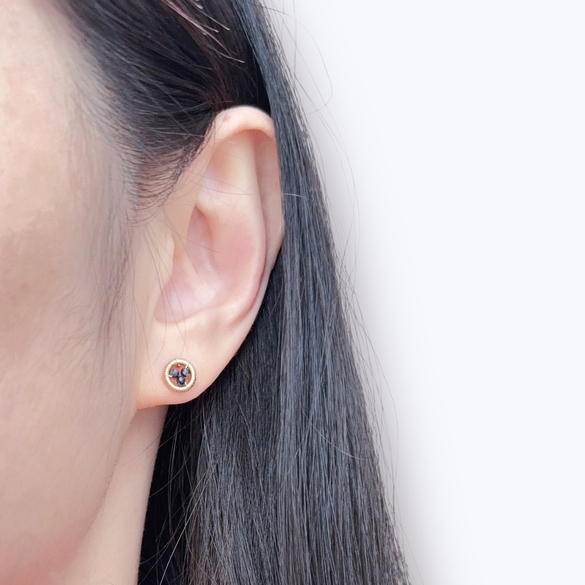 Little gemstone sapphire beads wrapped inside 14k gold filled loop stud earrings.